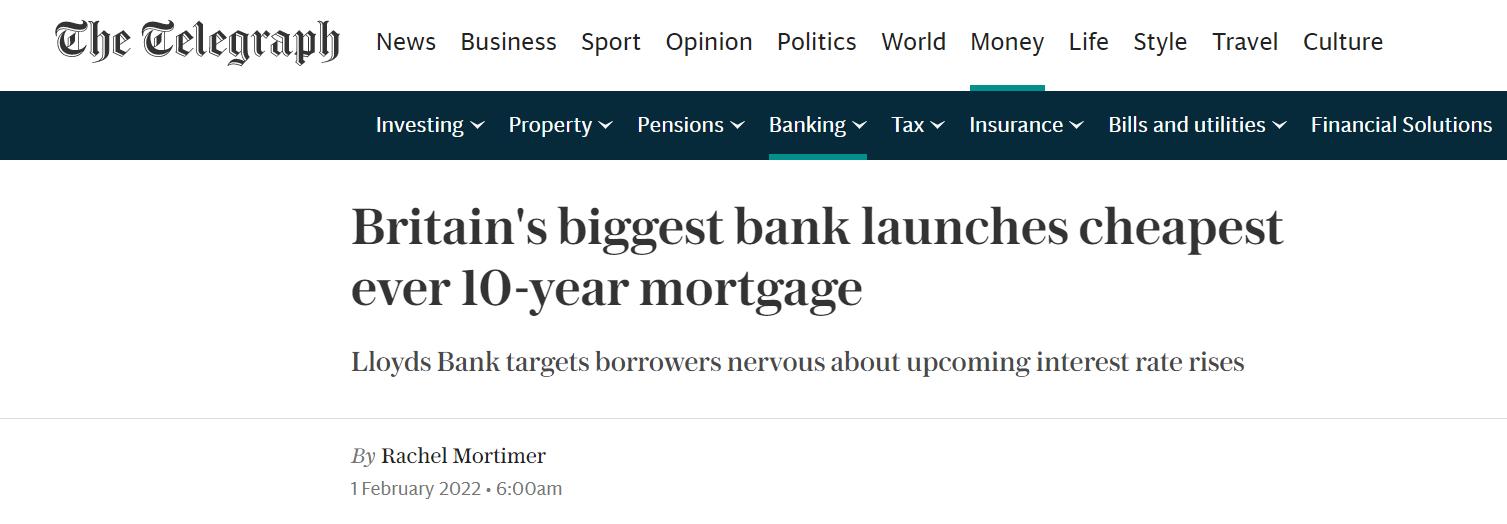 近日,劳埃德银行推出了一项10年期固定利率贷款产品,利率为1.66%。