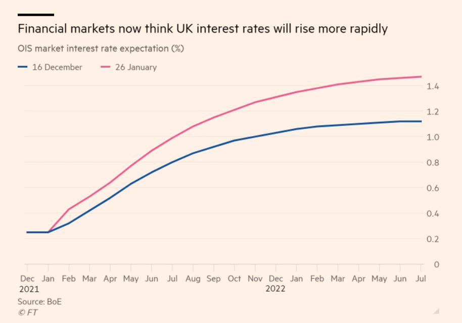 为遏制通胀,去年12月,英国央行货币政策委员会(MPC)批准将基准利率从0.1%上调至0.25%,这也是近三年多来英国首次加息。