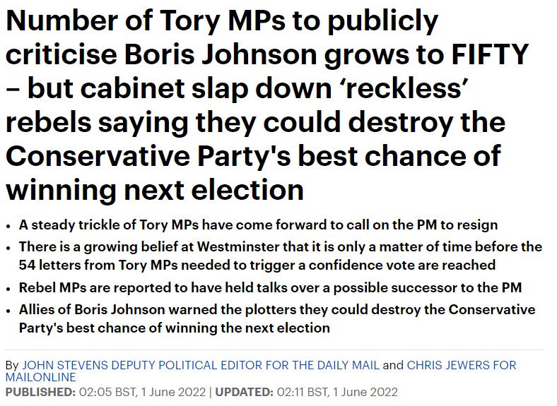 据报道,现在有30名保守党议员呼吁对鲍里斯进行信任投票,而另外16名保守党议员公开反对鲍里斯,还有议员甚至就可能的替代人选进行了会谈。