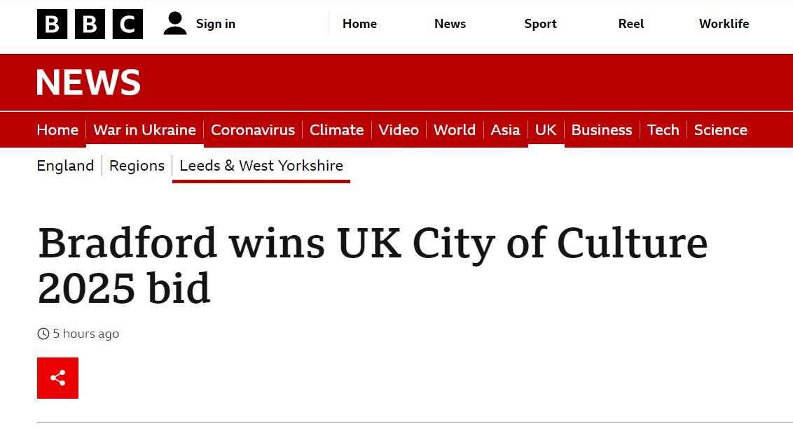 【Bradford赢得英国文化之城称号】