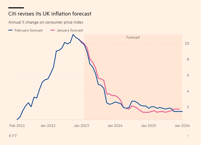 - 花旗集团(Citigroup)预测,英国通货膨胀率将在秋季回到2%。