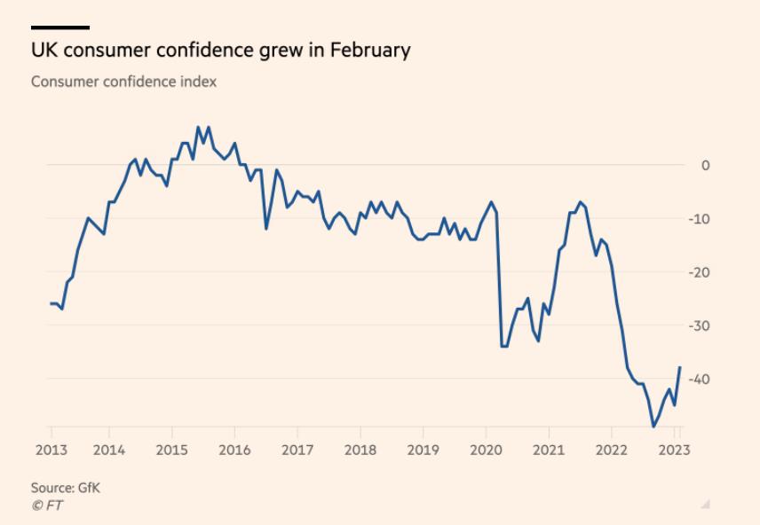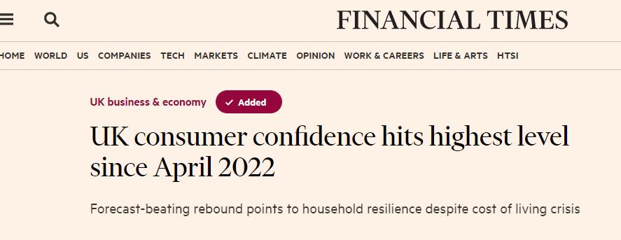 - 英国消费者信心在2月份反弹至近一年来的最高水平,这表明尽管面临着生活成本危机,但家庭仍具有很强的韧性…