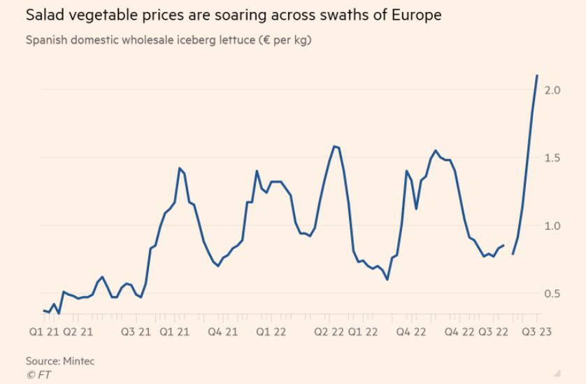 与此同时,由于受恶劣天气影响,整个欧洲大陆的沙拉蔬菜价格飙升,这也给很多零售商带来了压力,一些国家甚至开始限制出口。