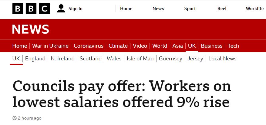 - 英国政府将为地方议会的低收入员工提供幅度超过9%的加薪…