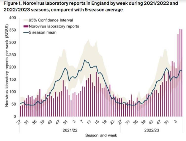 UKHSA表示,现在的诺如病毒病例几乎是一年中该时期平均水平的两倍。