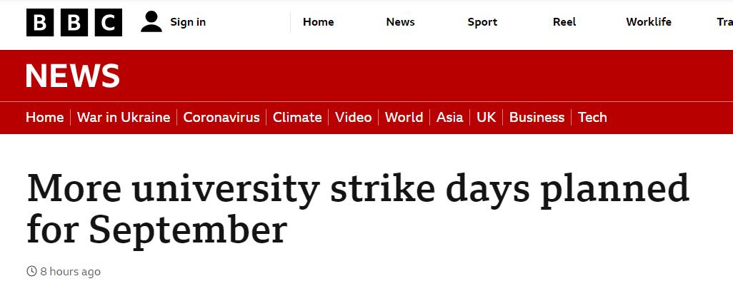 - UCU工会宣布,由于薪酬相关的谈判失败,大学将于9月继续举行更多罢工…