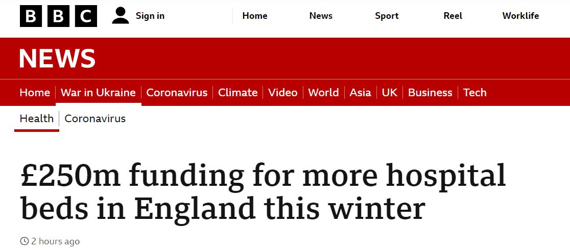 - 英国政府将拨款2.5亿英镑,在今年冬天为英格兰NHS额外提供5,000个医院床位,同时,政府还将提供资金,加大那些无需住院即可接受治疗的服务…