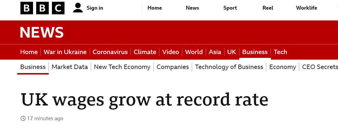 【英国工资涨幅创新高】