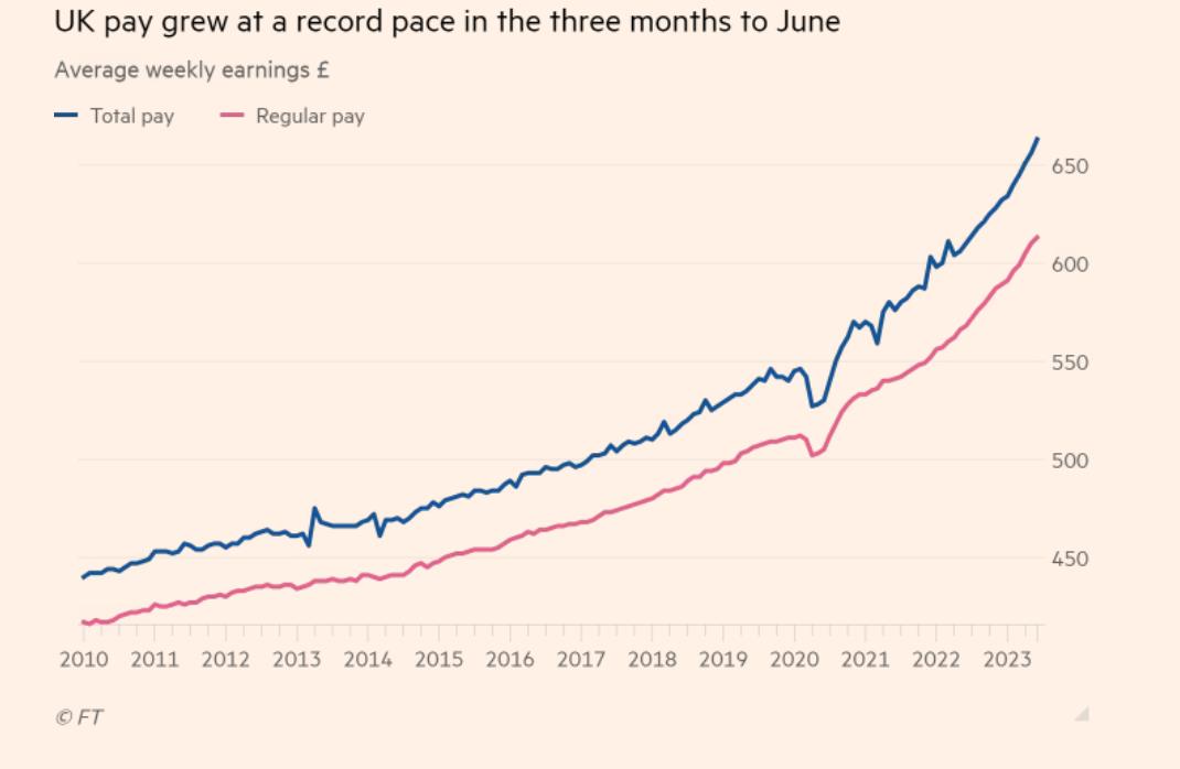 根据英国国家统计局(ONS)的最新数据,四月至六月期间,英国员工工资涨幅创下历史新高。
