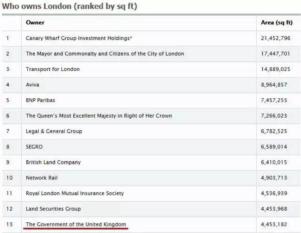 从Property Week的统计能看出,其实英国政府在伦敦的势力一点都不占优。