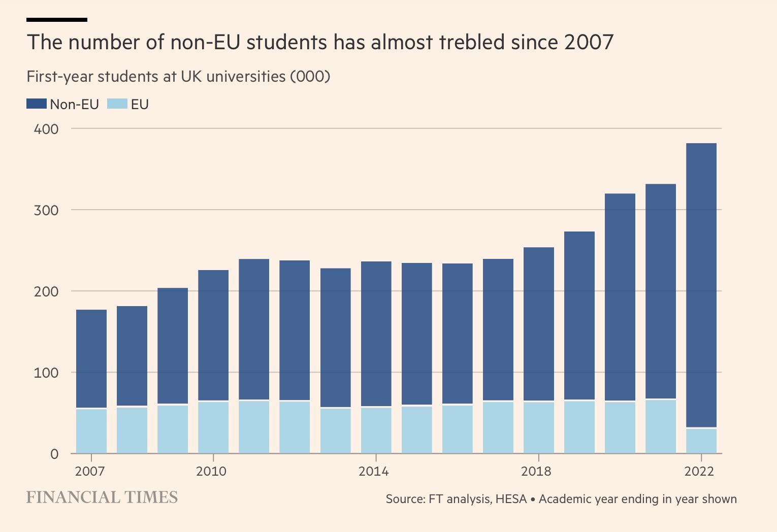 据金融时报报道,对英国高等教育统计局(Higher Education Statistics Agency)数据的数据显示: