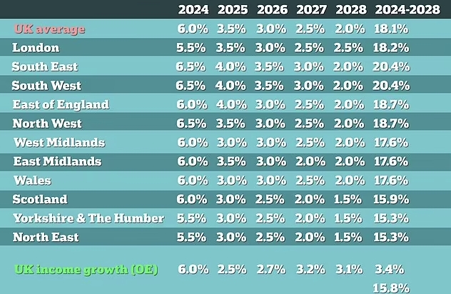 展望未来,Savills预测2024年英国平均租金将继续上涨6%,未来五年将上涨18.1%。