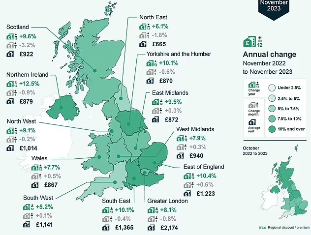 根据Homelet租赁指数,从2020年11月到今年11月,英国每套房产的平均租金上涨了31%以上,从每月974英镑增至1,279英镑。