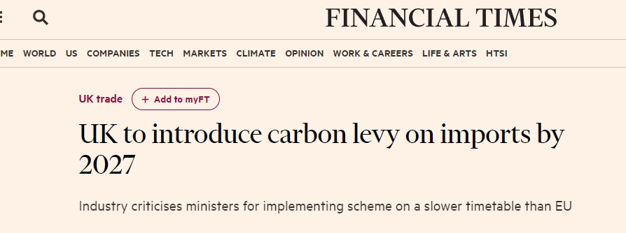 【英国将于2027年对进口产品征收碳税】