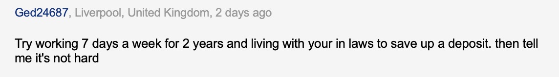 试着每周工作7天,坚持2年,和你的亲戚住在一起存点钱。然后再告诉我这不难