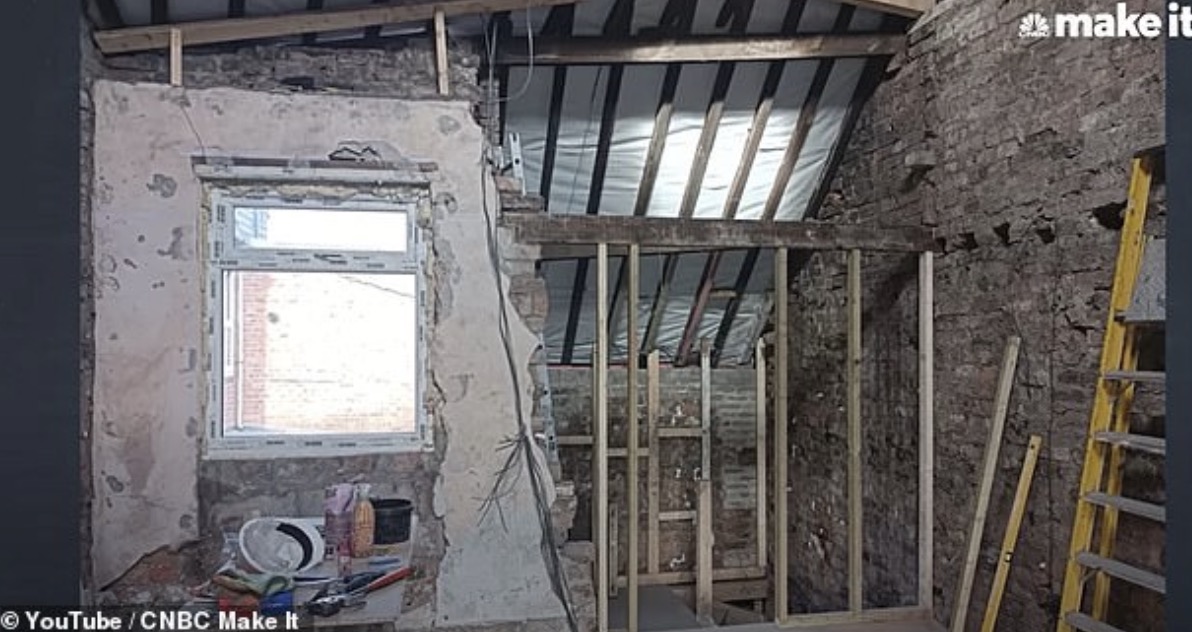 起初,房子根本不能住人,她只能在房车里住了几个月的时间。后来,楼下的部分工作完成,她在厨房里睡了6个月。