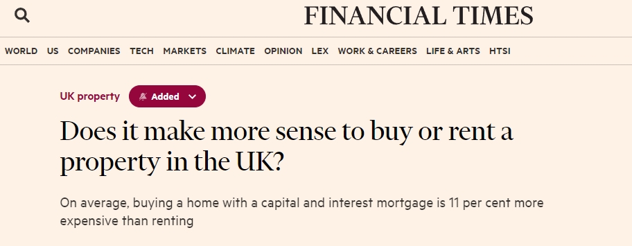 Savills表示,从历史上看,买房的平均成本高于租房的情况并不常见。