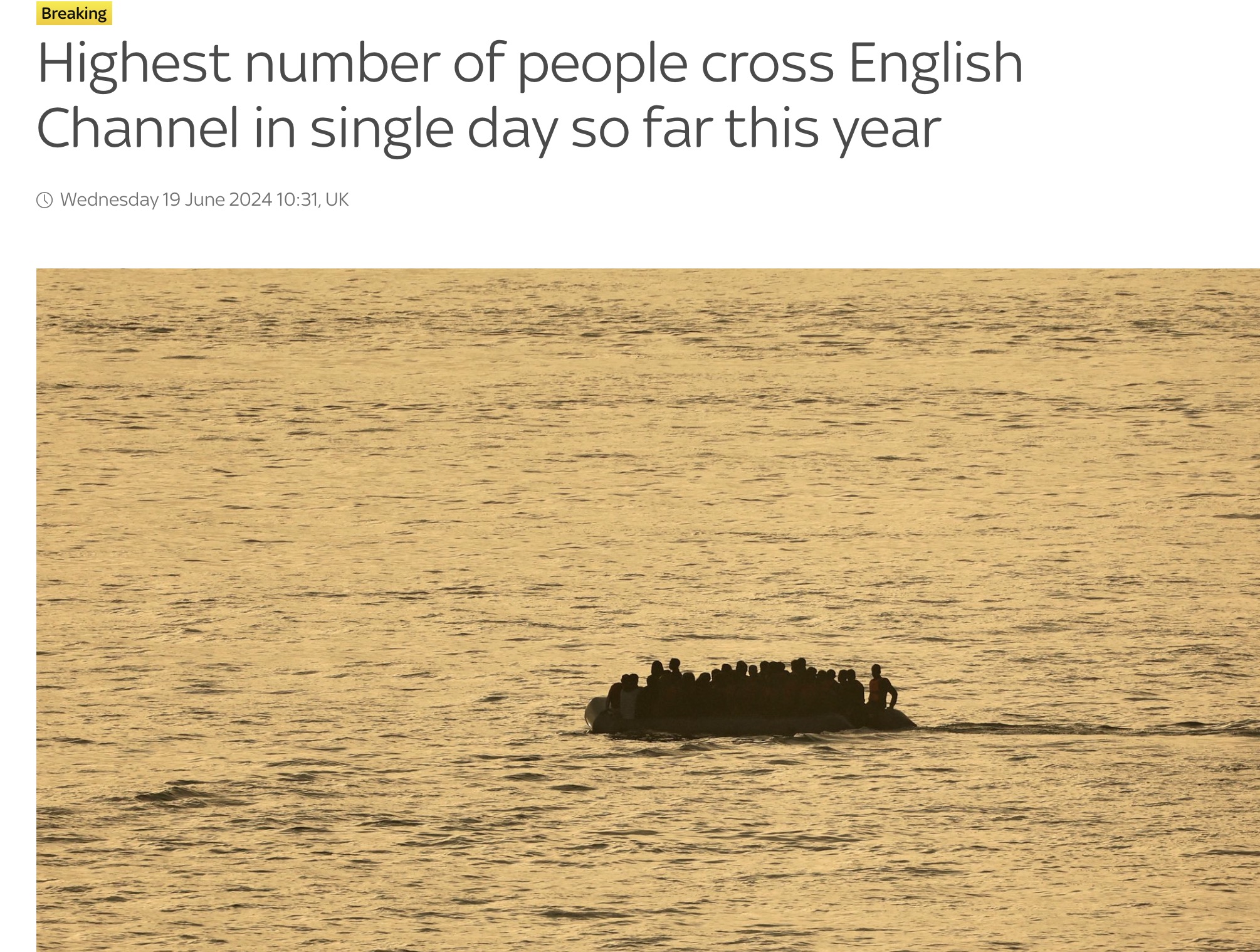 - 据天空新闻报道,本周二,约有882名偷渡移民穿越英吉利海峡,这是今年以来单日人数最多的一次。