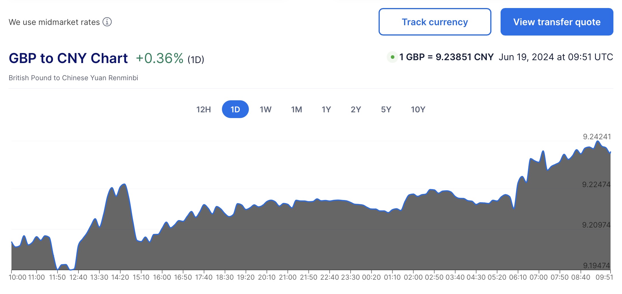 兑换人民币汇率为:1 GBP = 9.23851 CNY