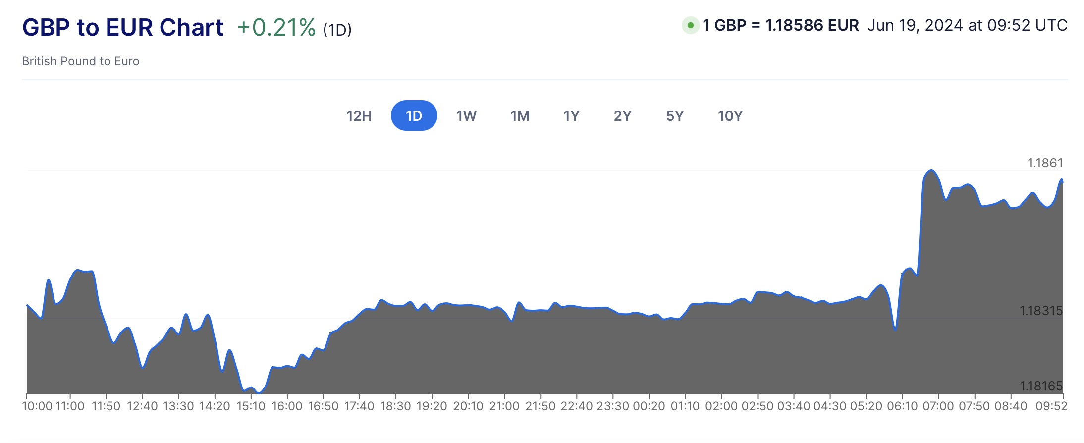 兑换欧元汇率为1 GBP = 1.18586 EUR
