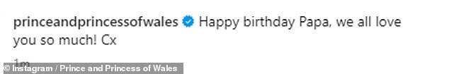 - 威廉王子迎来42岁生日,凯特王妃分享了威廉和孩子们的一张照片,并附文:我们都很爱你!