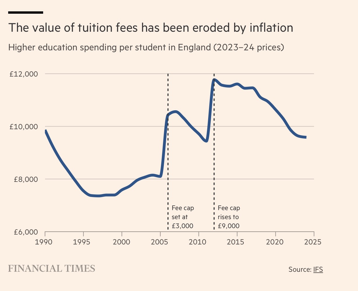 据金融时报报道,英国大学行业组织呼吁工党按照通胀率提高学生学费,以应对大学资金不足的困境。