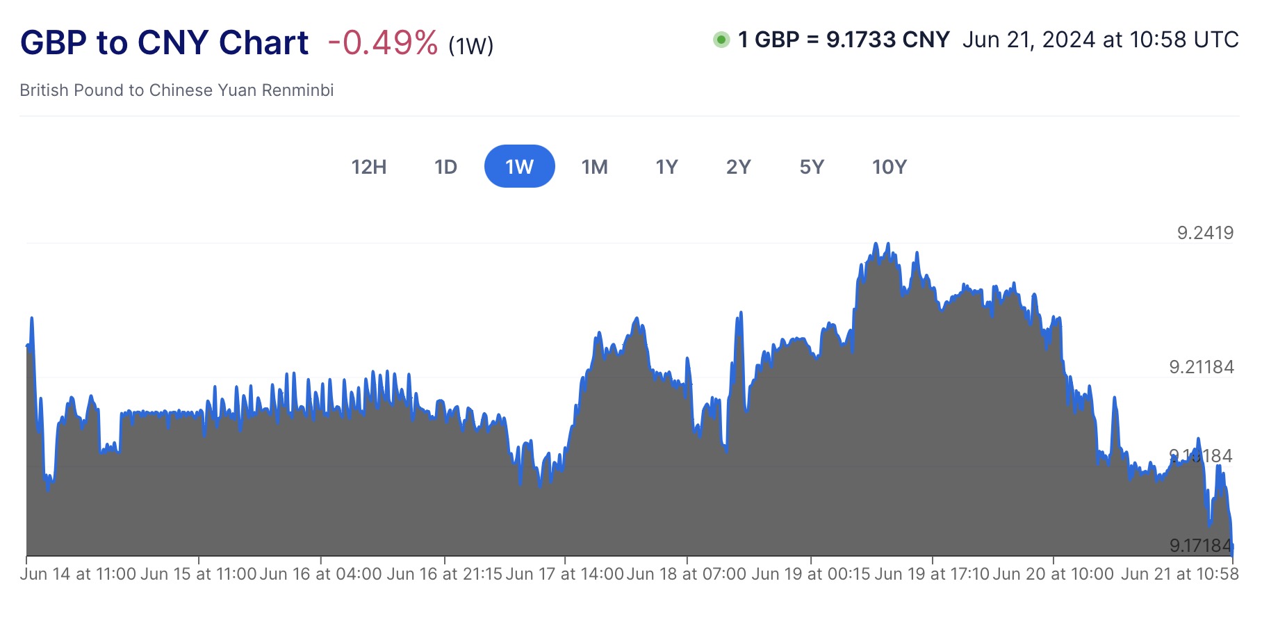 兑换人民币汇率为1 GBP = 9.1733 CNY。