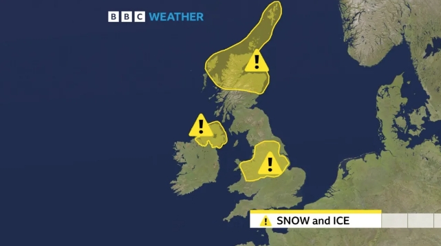 与此同时,英国卫生安全局(UKHSA)向英格兰大部分地区发布了寒冷健康警报,警告NHS服务将面临更大的需求,这一警报将持续至周四。