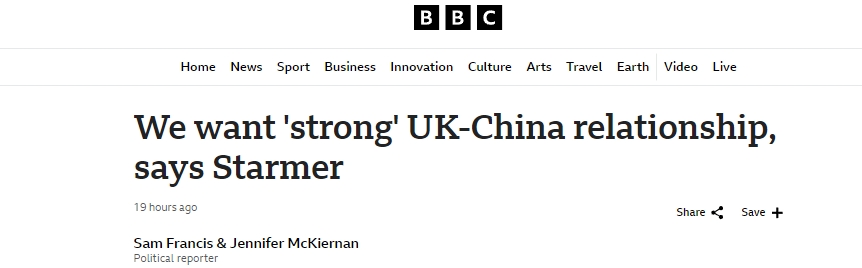 斯塔默表示,我们希望与中国的关系更加“牢固”。