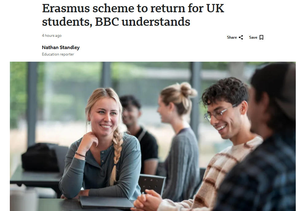 - 英国已确定将重新加入伊拉斯谟计划,五年前曾因脱欧终止参与该计划…