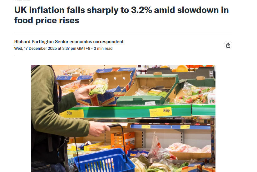 - 英国11月份通胀率大幅降至3.2%,为近八个月来的最低水平…