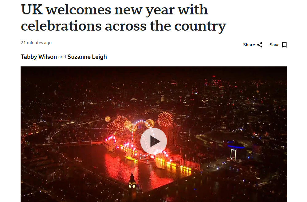 - 英国各地举办了隆重的跨年庆祝活动,人们在烟花盛会与庆典狂欢中迎来新年…