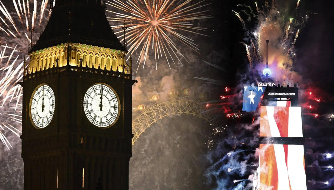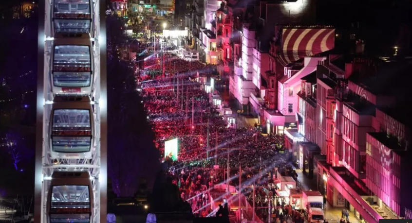 在伦敦迄今规模最大的焰火表演中,12万枚烟花在泰晤士河畔绽放,10万民众沿岸观赏。爱丁堡城堡上空上演长达六分钟的精编焰火秀,数以万计狂欢者齐聚著名的“除夕夜”街头派对。