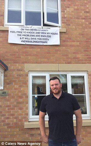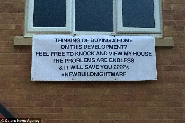 他在自家二层的窗户上挂出了标语:“想买这里的房?欢迎大家随时来我家敲门,看看房子有多少问题,这会帮助你做出正确的决定省一大笔钱!”