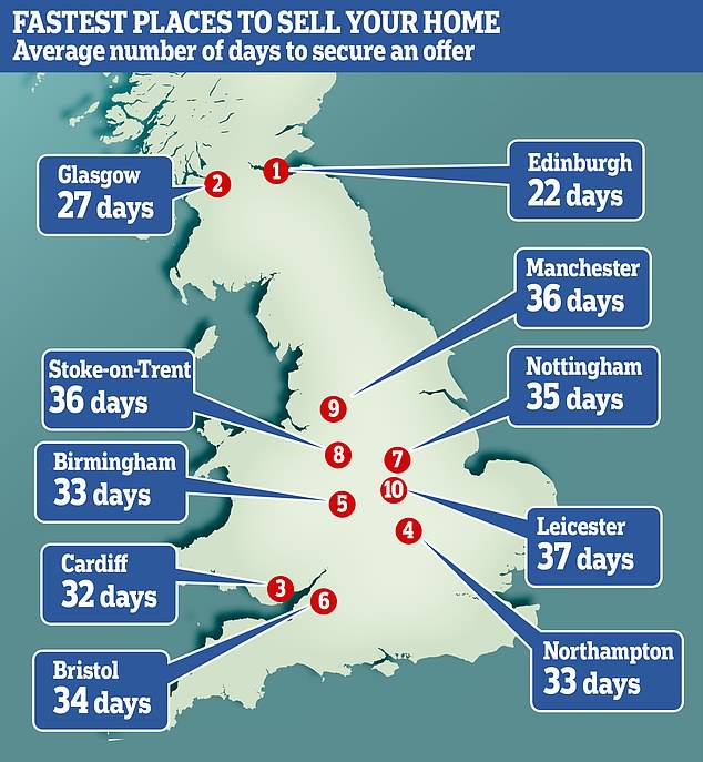 诺丁汉平均要价£200,687,房价均价£150,600,高出35%;莱斯特平均要价£226,951,房价均价£170,300,高出33%;伯明翰平均要价£198,890,房价均价£160,200,高出24%;布里斯托平均要价£324,110,房价均价£276,800,高出17%;曼彻斯特平均要价£187,838,房价均价£162,100,高出15%。