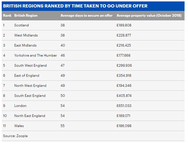 二手房交易时长最短的地区是爱丁堡跟格拉斯哥。至于原因,房价低是一个很大的因素。作为苏格兰首府,爱丁堡房价比很多英格兰南部城市便宜多了,房子卖得也比较快。