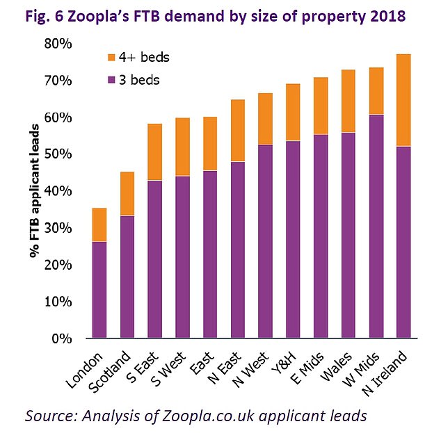 比如说,在West Midlands,有60%的首次购房者喜欢三居室,其次是East Midlands和wales,均有55%的首次购房者喜欢三居室。