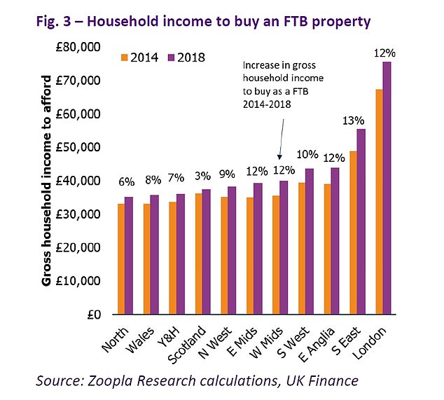 如下图所示:在英国各地买房,现在的收入要比2014年高多少。