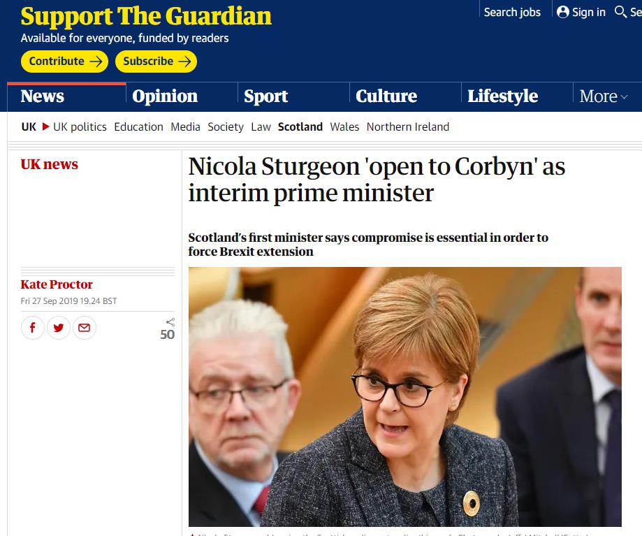 媒体认为,尼古拉·斯特金的这一表态,是在赤裸裸地暗示,她将支持科尔宾成为英国首相。