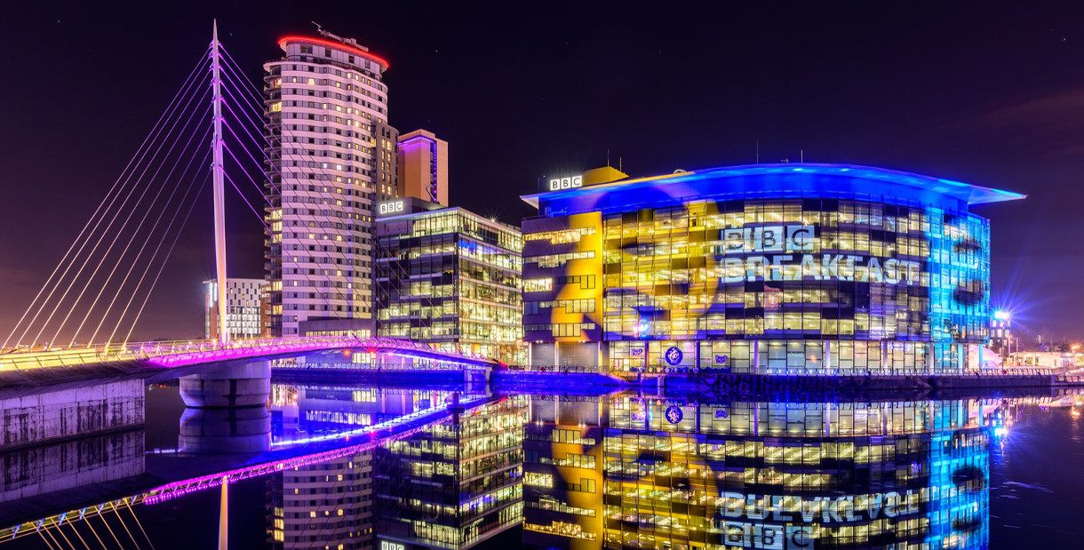 媒体城位于索尔福德和特拉福德,邻近曼彻斯特运河。