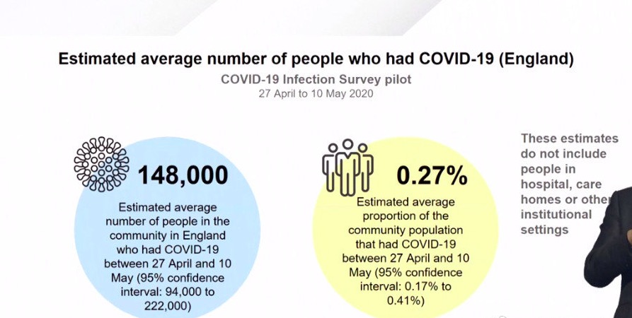 如果按此比例类推到英格兰的话,也就是说,在普查的那两周里,全英格兰上下可能有14.8万人正在感染新冠。