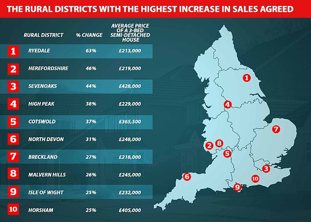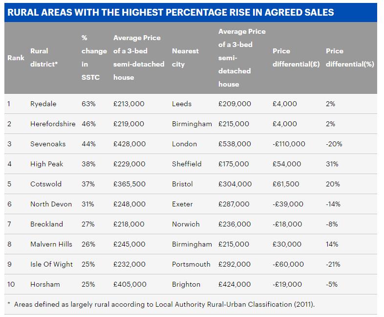 - 由于人们追求更大的空间,今年4月至9月间,英国部分乡村地区的房屋销售量出现了大幅增长…