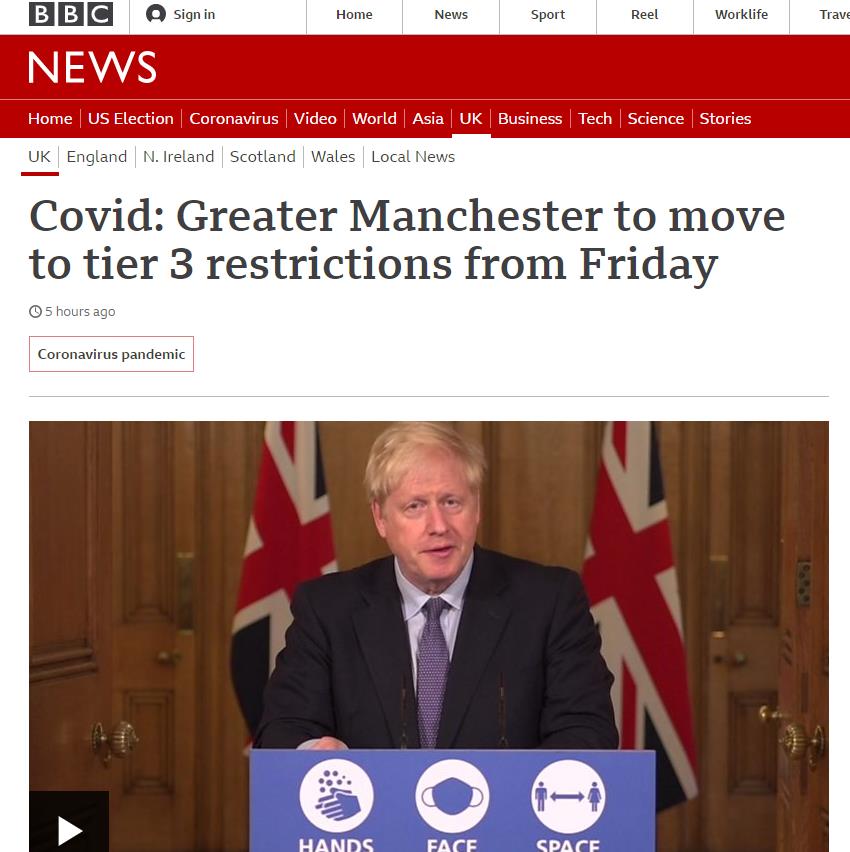 而在昨天下午,眼见谈不出个所以然,鲍里斯便兑现了先前的诺言,单方面做出决定,宣布将从本周五(10月23日)开始,在大曼彻斯特地区强制实行为期28天的最严格的三级封锁措施。