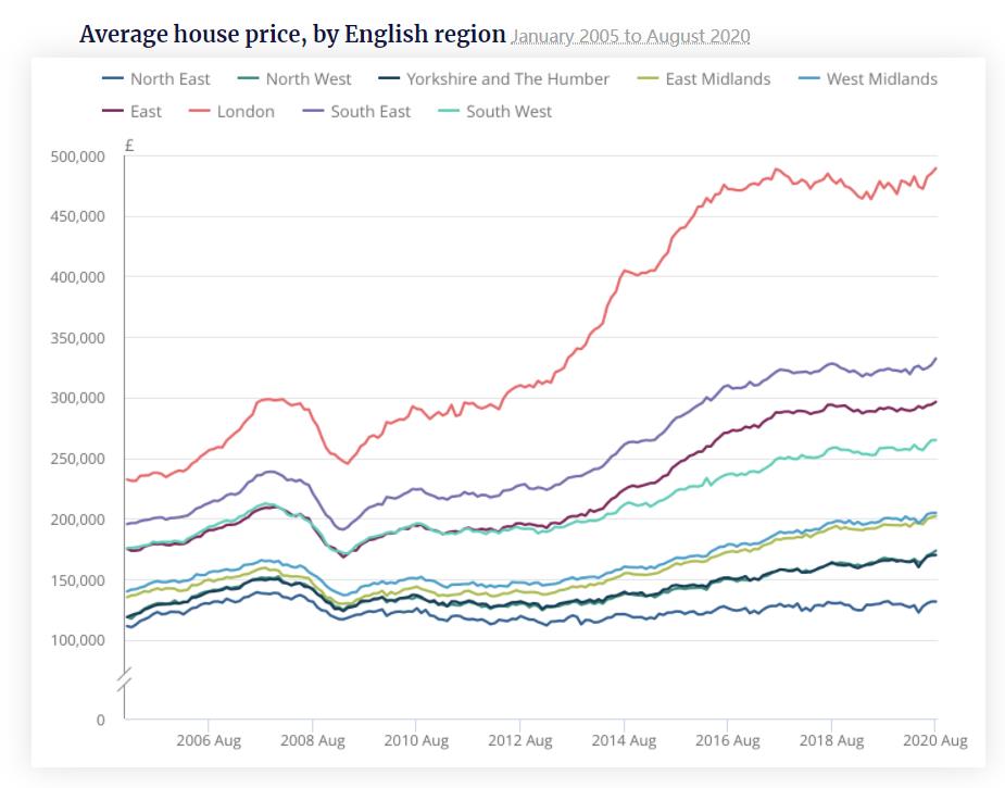 目前,伦敦房价远超全国其他地区,达到了48.9万英镑的均值,已回升至2017年的高点。