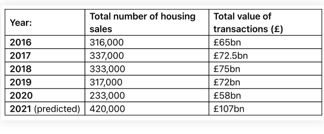 时至今日,距离印花税假期政策已经过去了整整一年,该政策对英国房地产市场的推动也是显而易见的,其中,最直接的表现就是导致房产交易量的大幅飙升。
